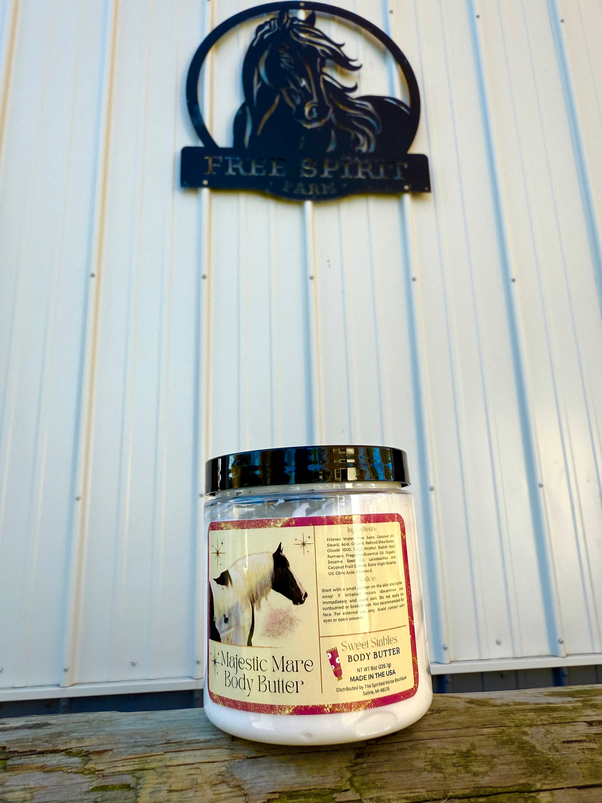 Step into the Stable Moisturized & Sugared Up with our Sweet Stables Body Butter. Indulge in a pampering experience with our wonderful body butter inspired by our gorgeous new horse that is the most majestic mare. This is a way we can celebrate her coming to FSE. Immerse yourself in the delightful Sweet Stable's (candy rose) that’s a delightful and light scent. This gentle sweetness will help you feel nourished. Celebrate this new beginning with our auction mare and treat yourself in the process.